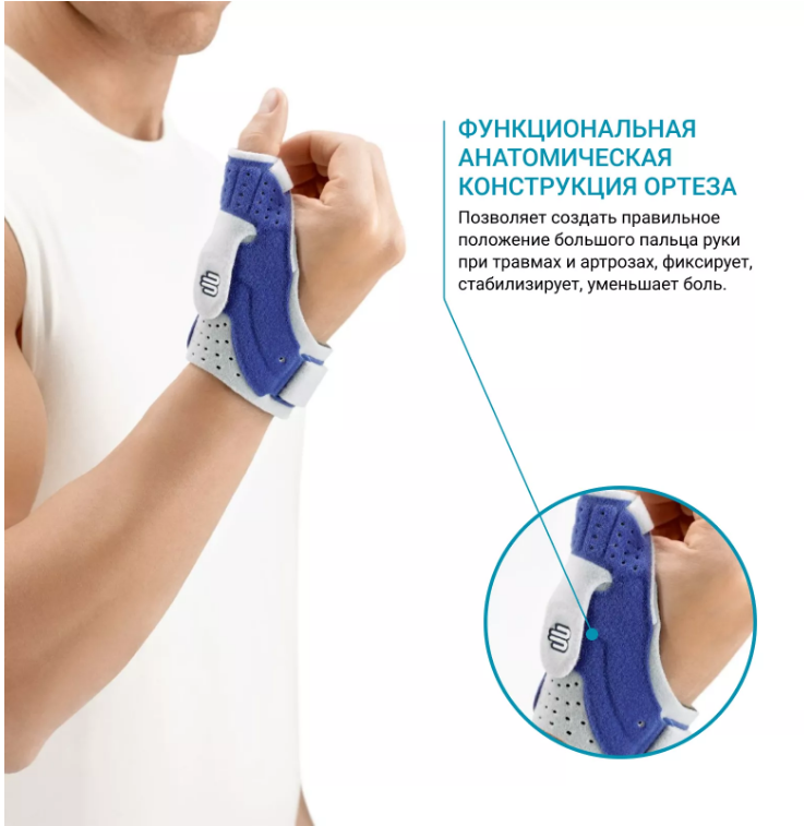 Ортез прекрасно подходит для стабилизации при травмах большого пальца (разрывы или растяжения связок), а также при признаках артрита или других повреждениях.